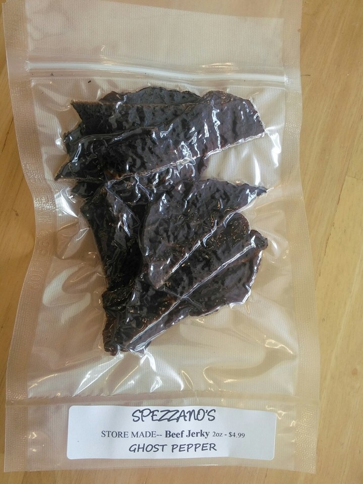 Ingredients: Beef, Salt, Black Pepper, Garlic Powder, Soy Sauce, Worchestershire Sauce, Ghost Pepper Sauce, Smoke Flavoring.